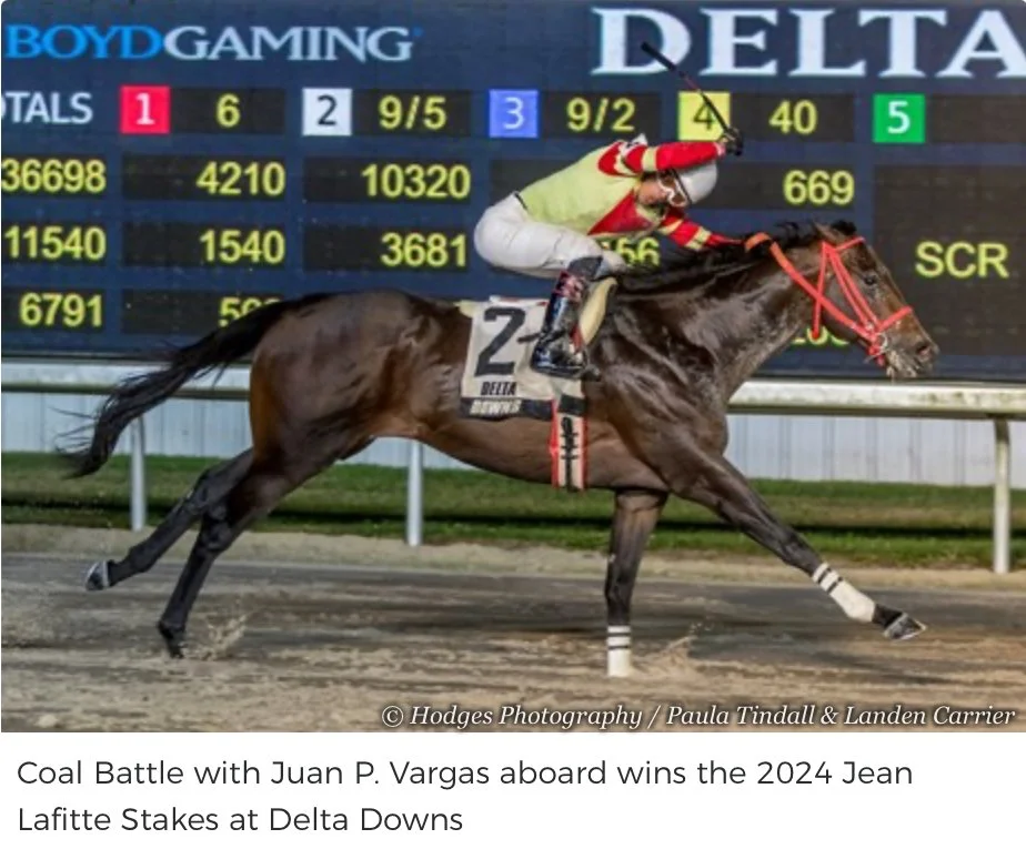 Although 2025 was a banner year for Louisiana-breds as they flashed their talent in graded stakes around the country, none made it to the starting gate for the 151st Kentucky Derby at Churchill Downs. But one of those 19 elite horses could have been a Louisiana-bred, and he perhaps can best be described as a Kentuciana-bred. That horse is Coal Battle, who was sired by Louisiana stallion Coal Front and bred jointly by Louisianan Jay Adcock and Kentuckian Hume Wornall. The talented runner is trained by longtime Louisiana conditioner Lonnie Briley and is owned by Alabamian Robbie Norman’s Norman Stables LLC, which has campaigned numerous top Louisiana-breds over the years.
